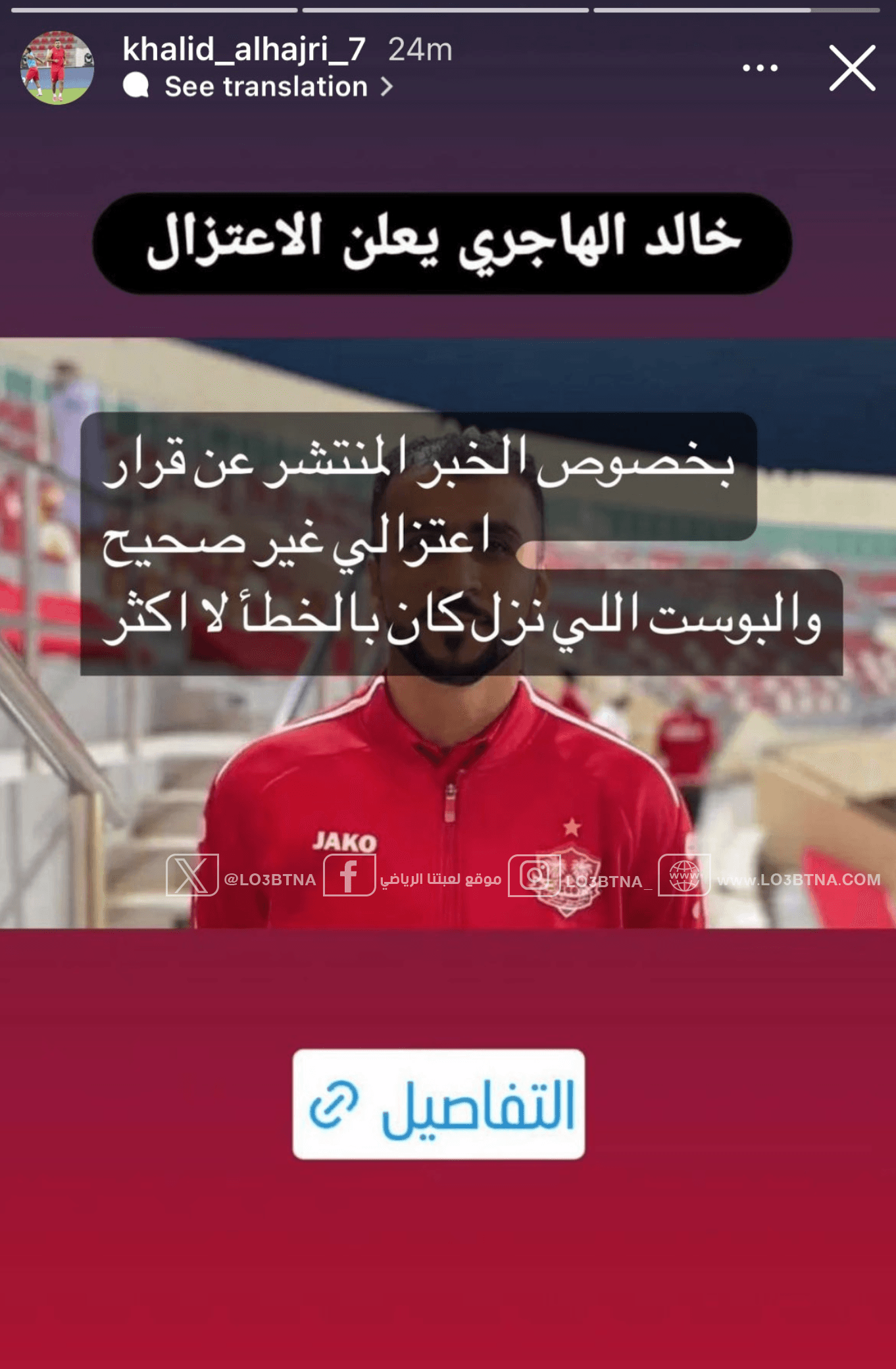 أعلن لاعب كرة القدم خالد الهاجري اعتزاله النهائي عبر حسابه على إنستغرام في منشور أثار استغراب العديد من متابعيه.
